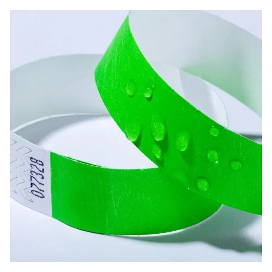 - 500 zielonych neonowych opasek na rękę wykonanych z materiału Tyvek®, posiadają numerację seryjną