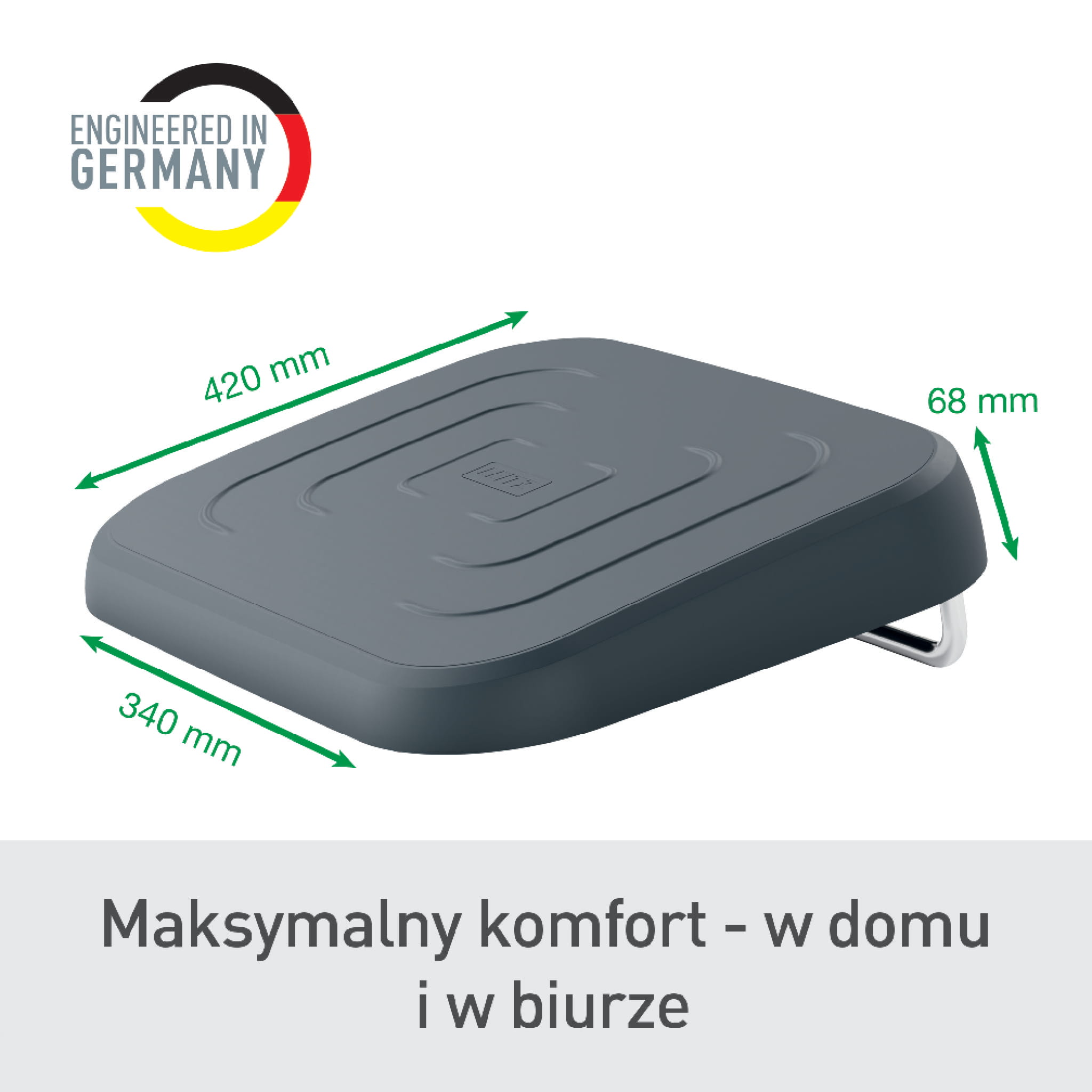 - Nowoczesny i minimalistyczny design, najwyższej jakości podnóżek zaprojektowany w Niemczech