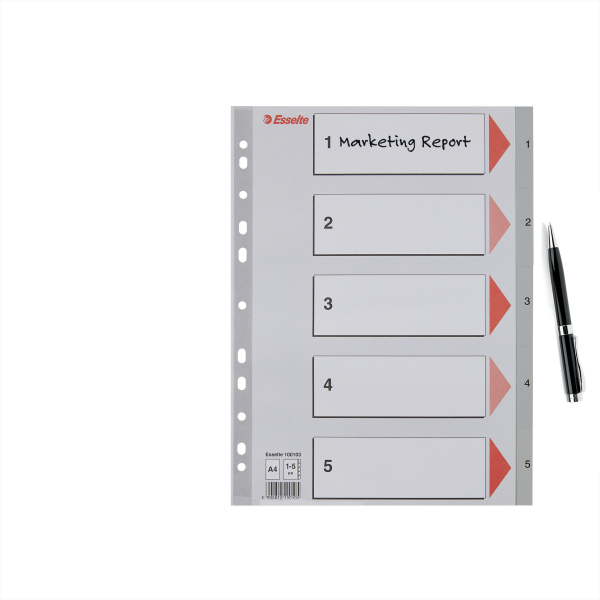 Przekładki Esselte z PP - format A4 - 5 zadrukowanych numerycznie indeksów (1-5) w opakowaniu