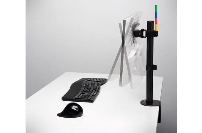 - Łatwy montaż do krawędzi biurka przy użyciu zacisku typu C lub klamry oczkowej - zajmuje niewiele miejsca, nie rysuje i nie niszczy powierzchni biurka