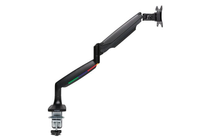 Przetestowana pod kątem zgodności ze standardami ANSI/BIFMA wytrzymała konstrukcja gwarantuje stabilność w każdej pozycji, a sprężyna gazowa umożliwia bezwysiłkowe i bezproblemowe ustawienie wysokości, odległości i kąta nachylania monitora (zarówno w poziomie, jak i w pionie). Wbudowany system do zarządzania kablami pozwala na ich ukrycie i utrzymanie w ładzie, a ramię unoszące monitor usuwa go z biurka, umożliwiając oszczędne gospodarowanie jego powierzchnią.