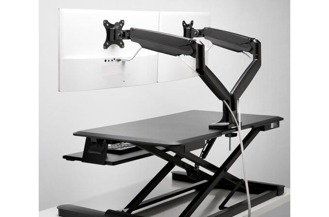 Przetestowana pod kątem zgodności ze standardami ANSI/BIFMA wytrzymała konstrukcja gwarantuje stabilność w każdej pozycji a sprężyna gazowa umożliwia bezwysiłkowe i bezproblemowe ustawienie wysokości, odległości i kąta nachylania monitora (zarówno w poziomie jaki i w pionie). Wbudowany system do zarządzania kablami pozwala na ich ukrycie i utrzymanie w ładzie, a ramię unoszące monitor usuwa go z biurka, umożliwiając oszczędne gospodarowanie jego powierzchnią.