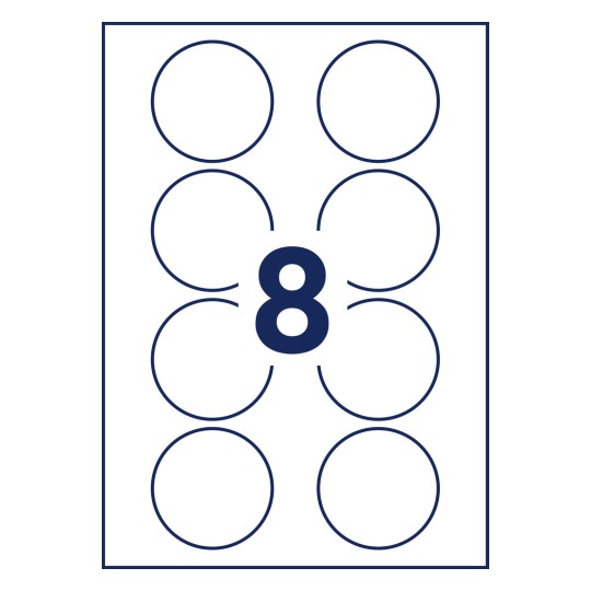 Samoprzylepne identyfikatory do zadruku, okrągłe, sztuczny jedwab Avery L4881-20 / Ø 65 mm, A4, 20 arkuszy - biały