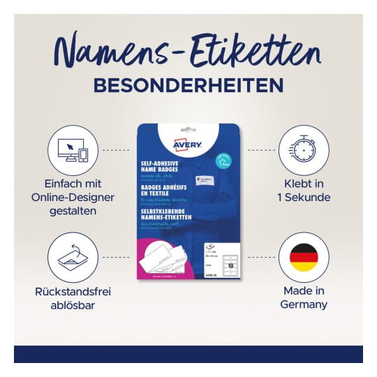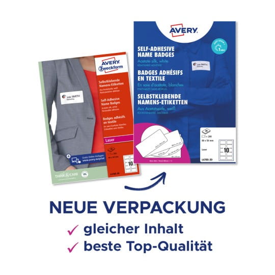 Żadnego zgadywania, żadnych wątpliwości co do tożsamości - po prostu łatwość naklejenia i pewność pozostania na miejscu. To właśnie otrzymujesz dzięki samoprzylepnym identyfikatorom. Zwiększona elastyczność pozwala identyfikatorowi zginać się tak jak ubranie i pewnie przylegać do materiału bez zawijania się na rogach czy odklejania. Dodatkowo specjalna technologia Peel-Away pozwala szybko i łatwo oddzielać identyfikatory, co w znacznym stopniu oszczędza czas podczas sortowania i rozdawania identyfikatorów podczas dużych wydarzeń.