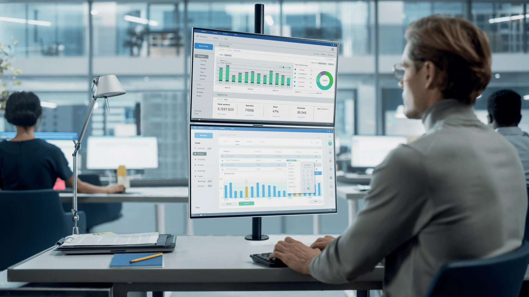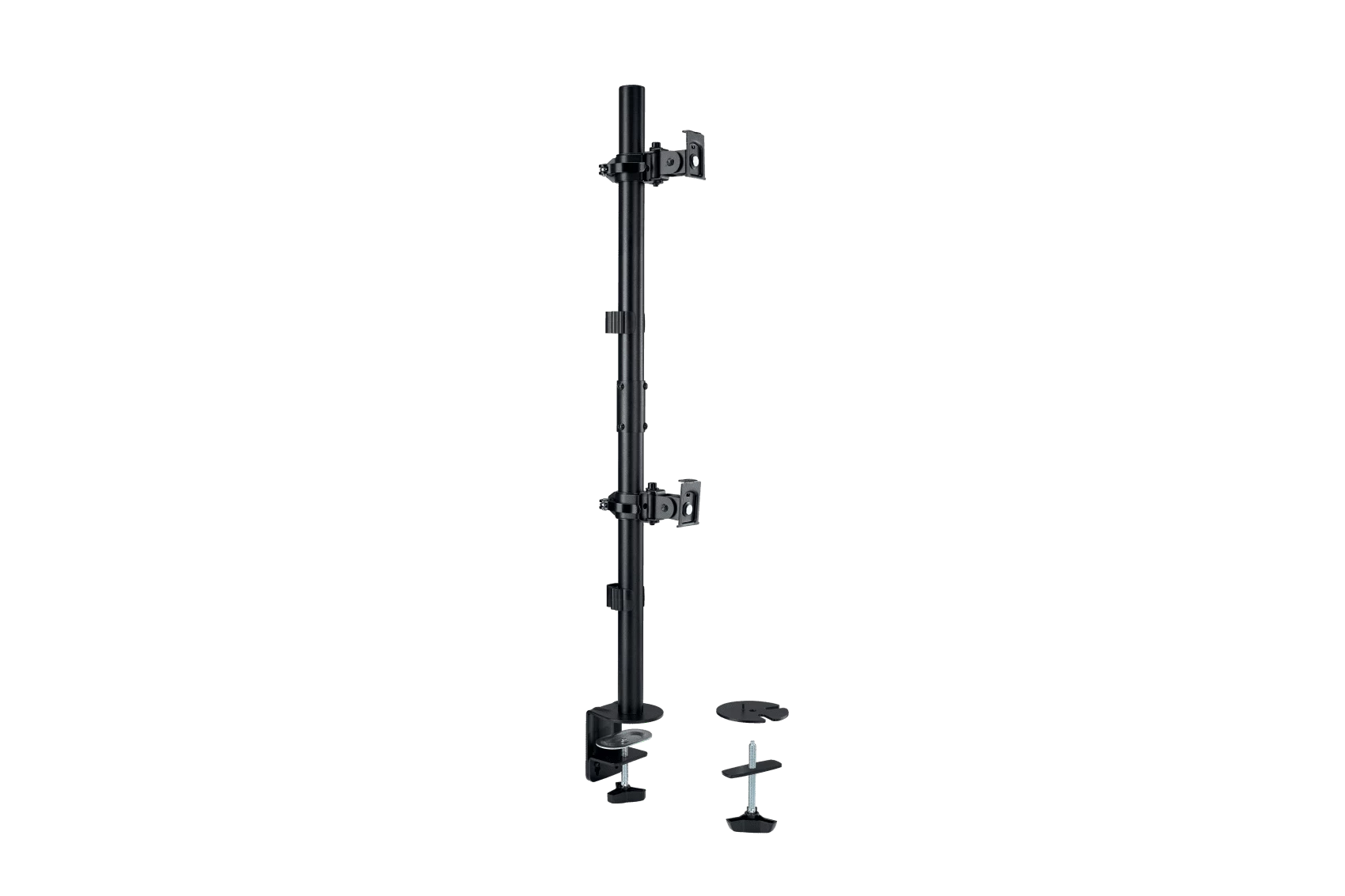 Uchwyt do pionowego montażu 2 monitorów zapewnia stabilne i bezpieczne mocowanie w pionie dwóch monitorów o przekątnej do 32" (i wadze do 9 kg) każdy, pozwalając na maksymalne wykorzystanie przestrzeni roboczej. Idealnie sprawdzi się w przypadku gamingu, przeglądania rozwiniętych w pionie stron internetowych, sterowania procesami lub w każdej sytuacji, kiedy dysponujemy ograniczonym miejscem na biurku. Łatwy do regulacji uchwyt umożliwia bezproblemowe i niewymagające użycia dużej siły ustawienie monitora na odpowiedniej wysokości. Prosty w montażu i obsłudze, z ruchomą konstrukcją umożliwiającą ustawienie monitorów pod dowolnym kątem. Zdejmowane płyty montażowe VESA® 75/100, obracające się w zakresie ±180° i fabrycznie montowany zacisk typu C (w zestawie opcjonalny także montaż przelotowy) zapewniają stabilność i wytrzymałość konstrukcji. Zintegrowany system do zarządzania kablami pomaga ograniczyć bałagan w miejscu pracy.
