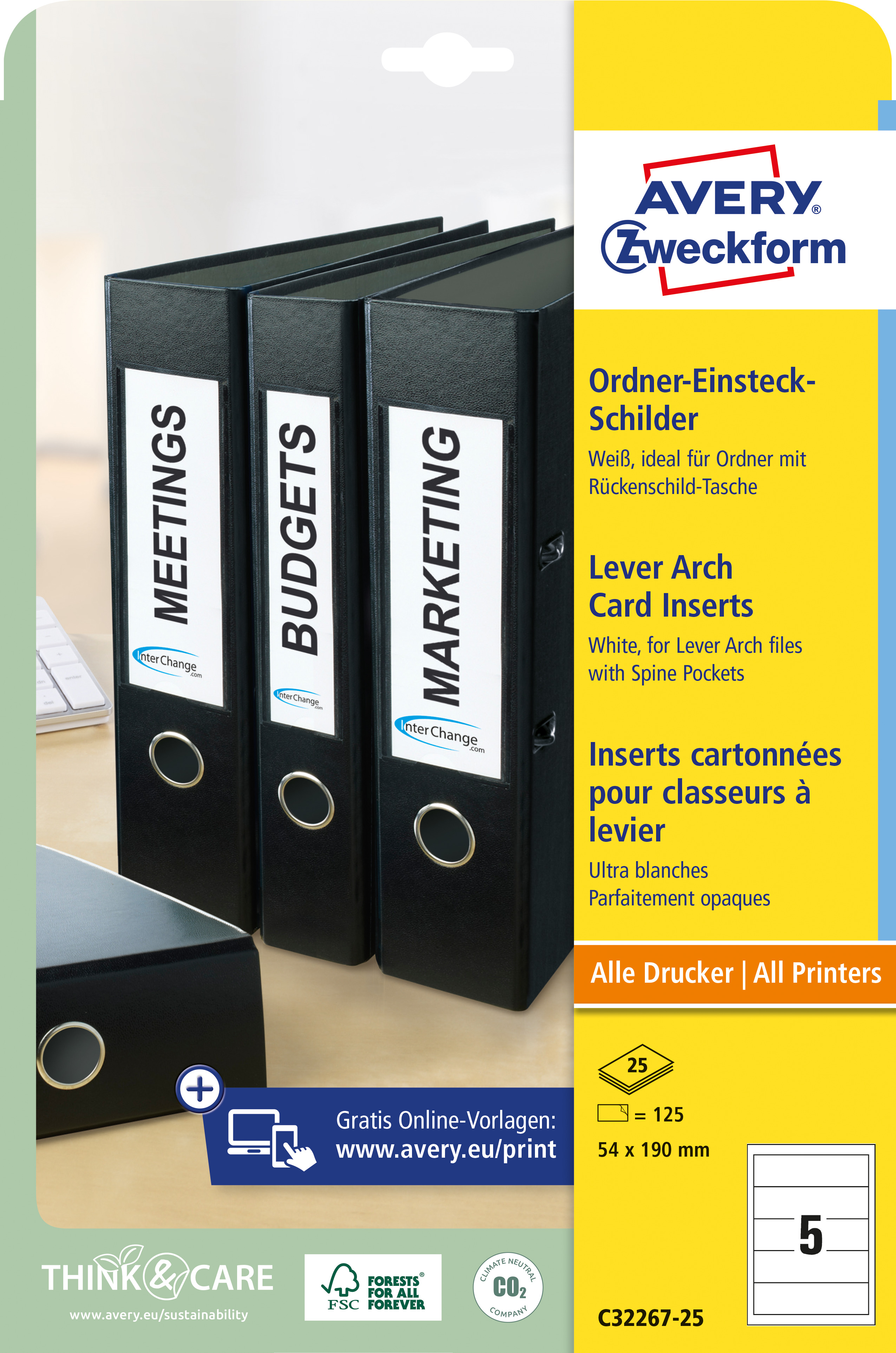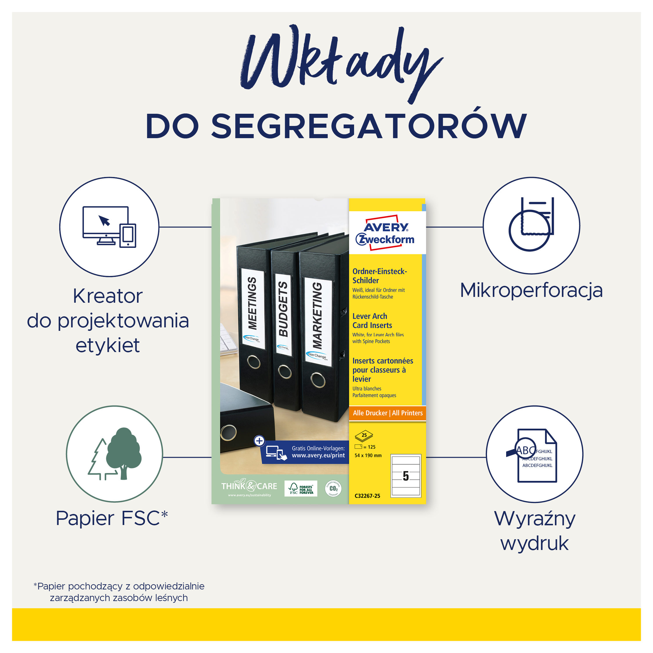 Wkłady do segregatora Avery C32267-25 - 54 x 190 mm, A4 25 arkuszy - biały