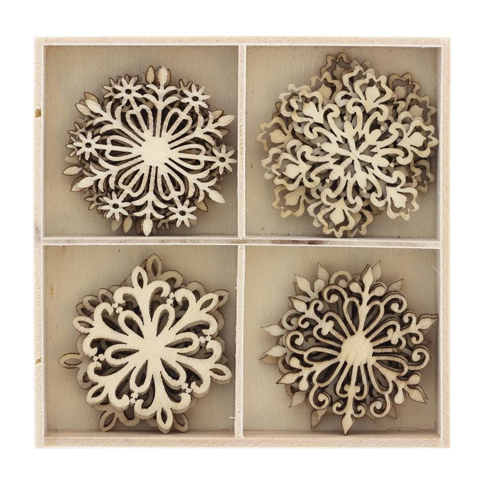 Zestaw drewnianych ozdób/zawieszek świątecznych ŚNIEŻYNKI - komplet 20 sztuk