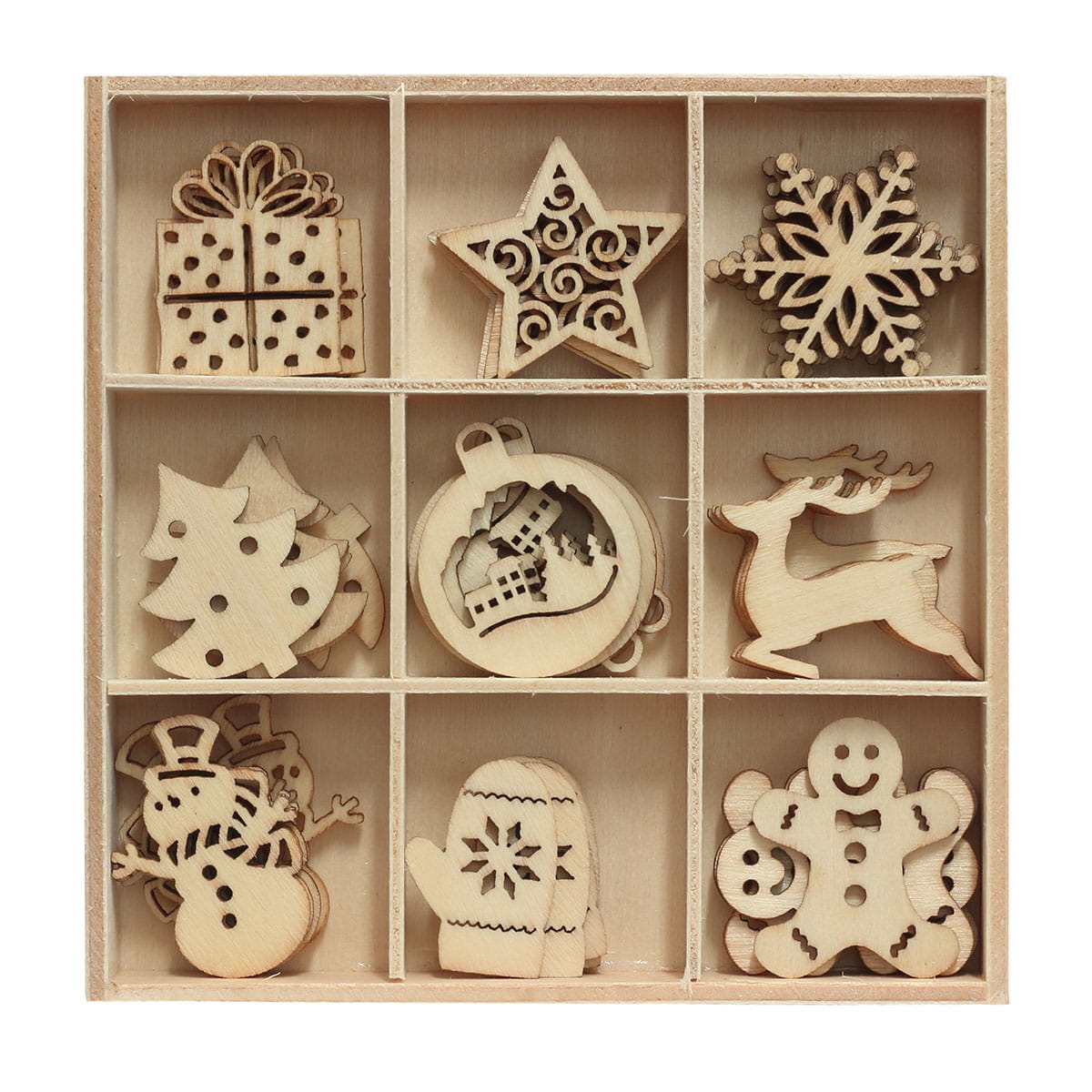 Zestaw drewnianych ozdób/zawieszek świątecznych komplet 45 sztuk